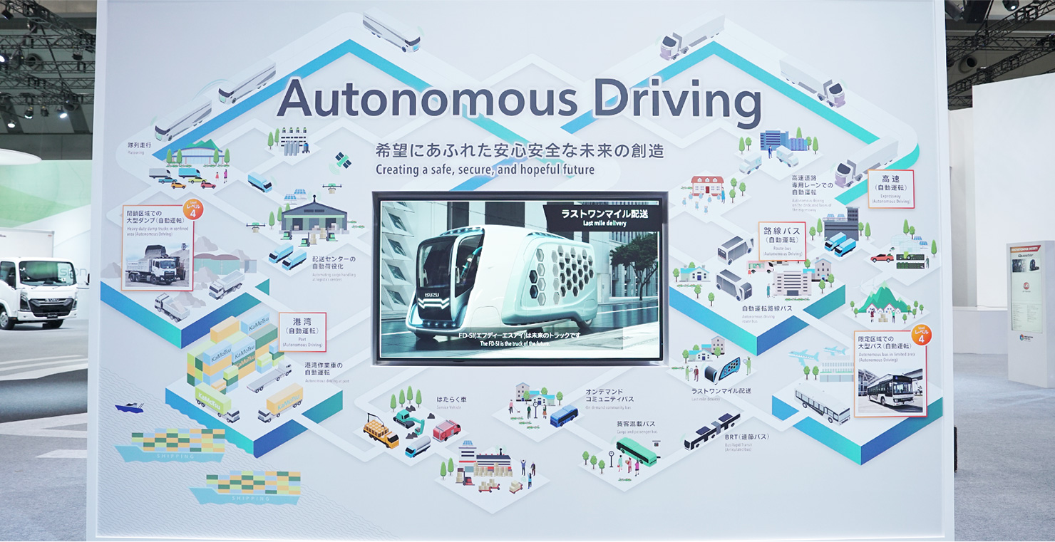 Evolving autonomous driving technology, along with the Isuzu Group’s current initiatives in that field, will be presented via images and graphics. In addition, "Fujin", an autonomous driving test vehicle, will be on display.