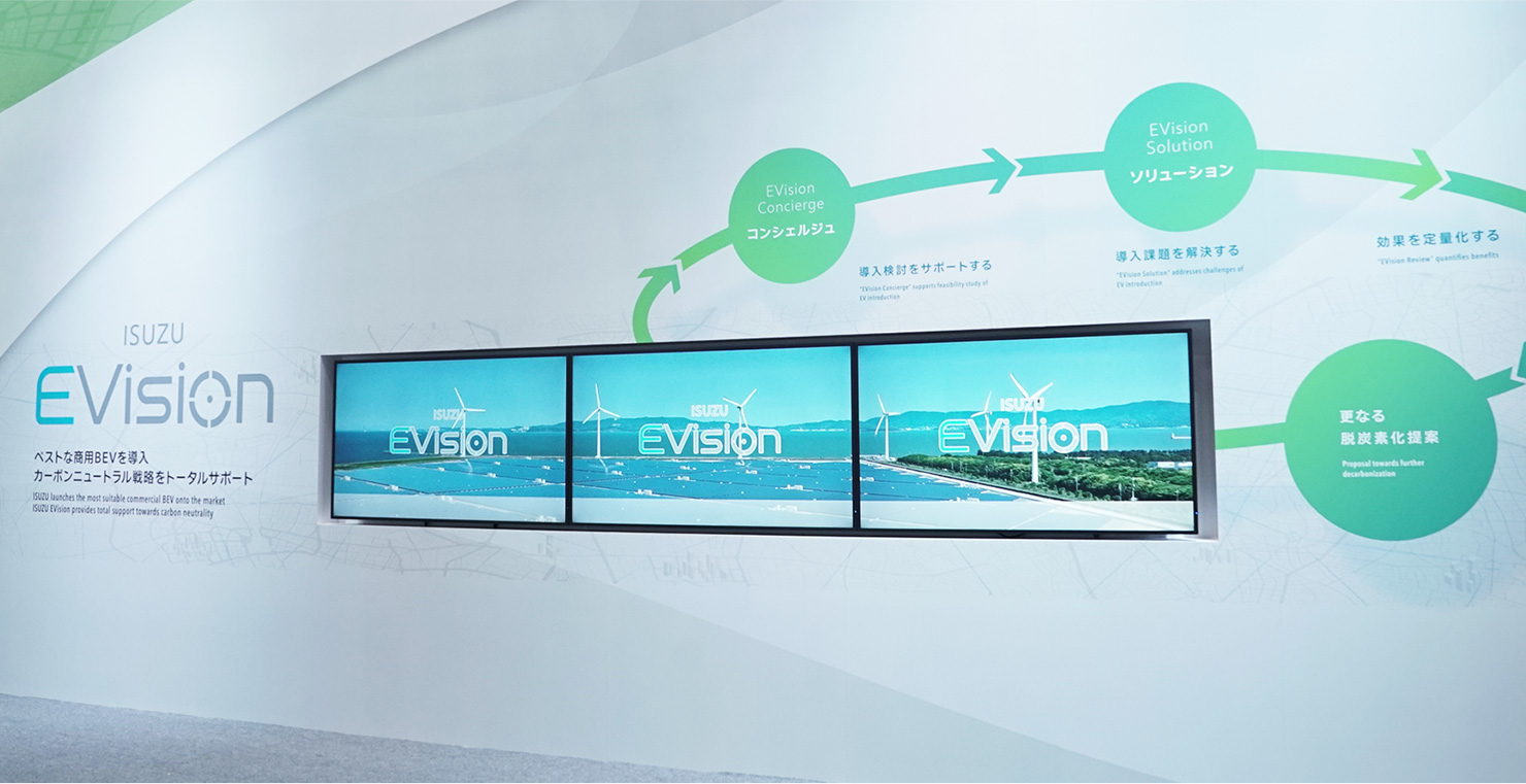 EVision, a total solution program that helps customers achieve carbon neutrality through the deployment of commercial EVs, will be introduced via videos.