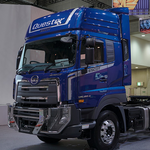 The GH13 engine, delivering unrivalled power and a smooth ride, and the ESCOT-VII transmission, which supports fuel-efficient driving, will be on display. Come see the powerful heart of a heavy-duty truck.